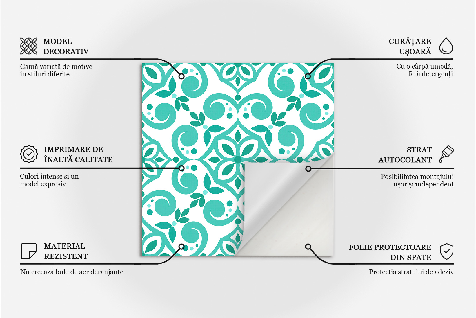 - Vă rugăm să rețineți că achiziționați autocolante pentru plăci cu imprimeu. Modele precum sclipici, aur, argint, beton, marmură, tablă ruginită etc. sunt doar imprimate, astfel încât pot să difere ca aspect față de materialele reale.