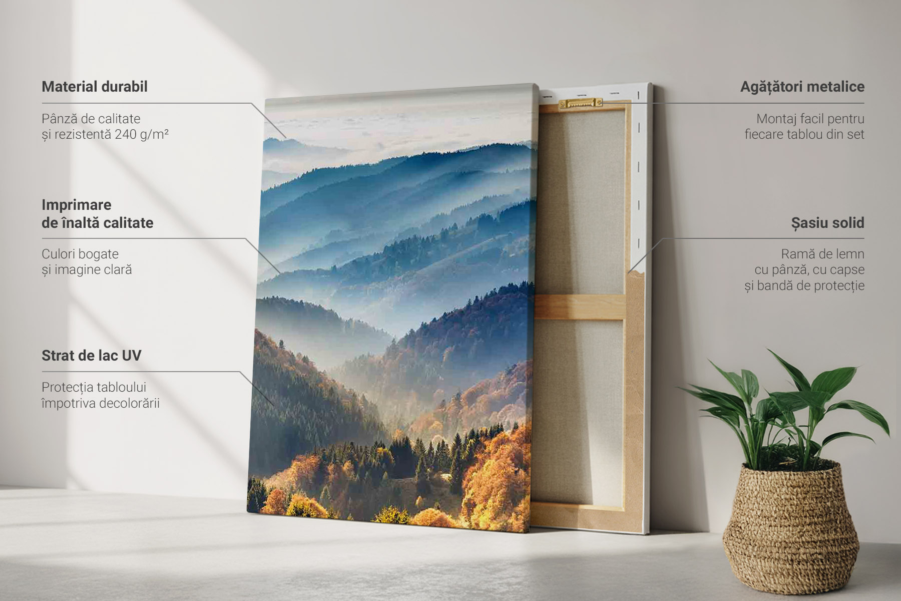 - Margini imprimate – finisaj estetic care permite agățarea tabloului fără ramă suplimentară